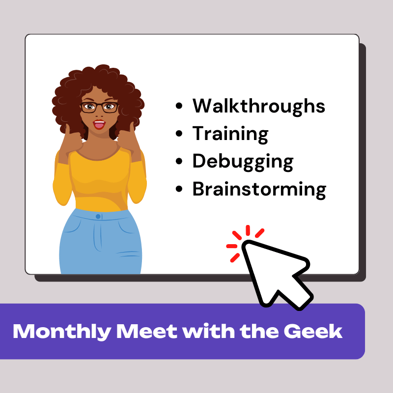 Schedule monthly live one-on-one sessions with Louise or one of our other resident geeks. We can log into your WordPress dashboard and walk you through actionable solutions, train you to improve your WordPress or DIVI skills, debug a plugin, brainstorm technical solutions for your business idea, or any other way you want to spend your time.