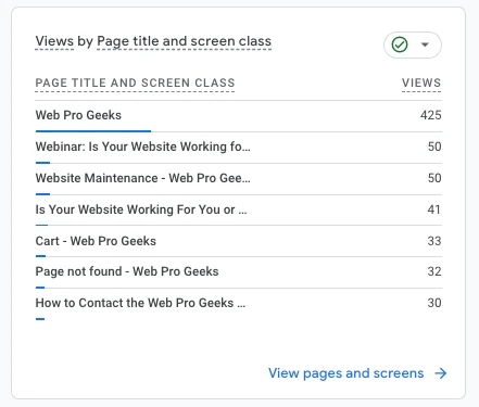 In this case, we see that our homepage is where people go first. But if we want more details, we can select View Pages and Screens.